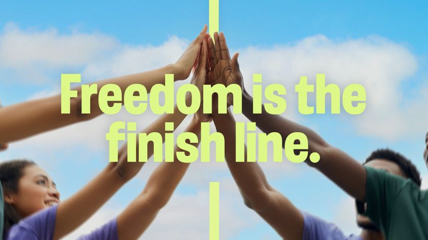The whole creative system was built around the Games’ strapline, “Freedom is the finish line”. Drawing on the visual language of sport, the concept embodies the energy of competition, the clarity of track markings, and the sense of movement towards a goal.