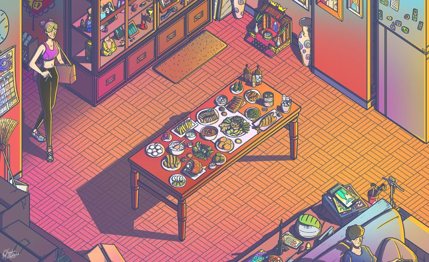 Today, Tanakan resides near Cincinnati, Ohio, USA, where he creates illustrations that often celebrate the everyday. “I believe there’s always something fun, or a little funny, in day-to-day life,” he says. “The world is getting harder to live in, and people, including me, often pressure themselves about their future. But we shouldn’t stress too much. Life always has its little jokes, mixed with a touch of fantasy.”